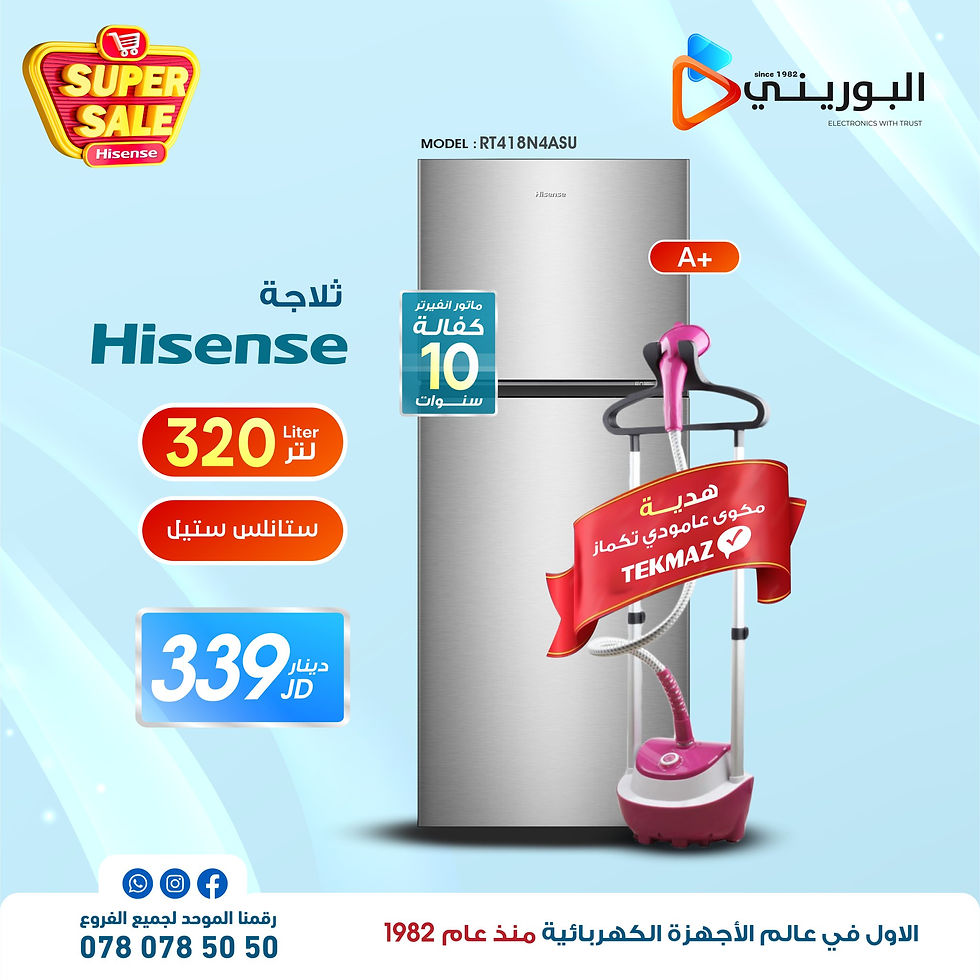 مكوى تكماز هدية + RT418NASU ثلاجة هايسنيس